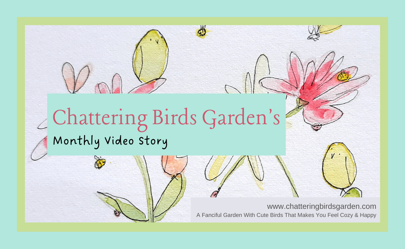 In this cute Video Story, by artist Carol Gilman, you’ll see a September day unfold in our imaginary garden featuring our cute birds Baby Betty, Mabel, Scout, and Sally, and our silly bees Beatrice and Buzzy the Bee. We hope you enjoy it!